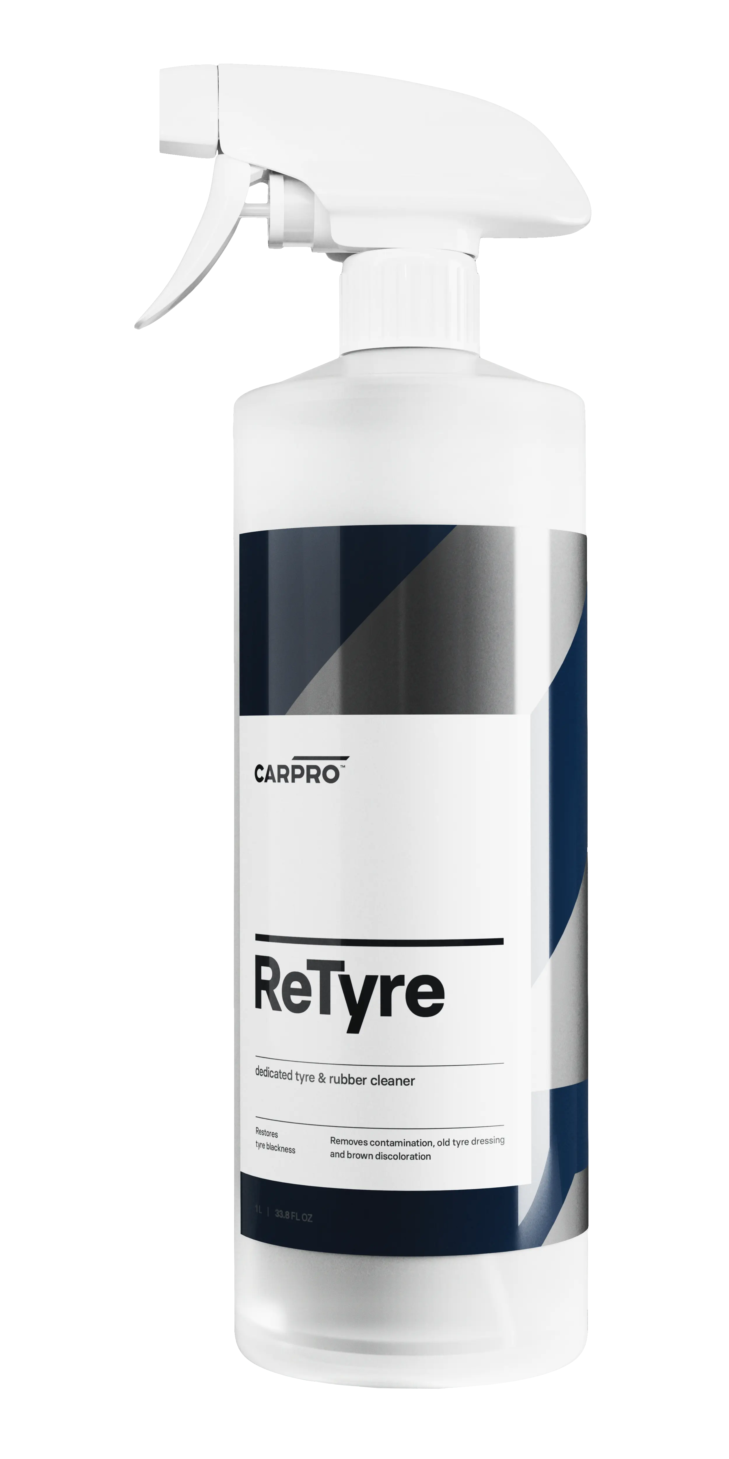 CARPRO ReTyre was designed from the ground up specifically for the easy cleansing of tires from accumulated tire dressings, road film, and browning antioxidants. ReTyre from CARPRO provides a sparkling clean new tire look and prepares the surface to apply BlackOut, Perl or your favorite tire sealant. Tire sealants, coatings, and dressings respond much better to a perfectly clean tire and in the case of CQUARTZ BlackOut it is absolutely imperative for a full bond!