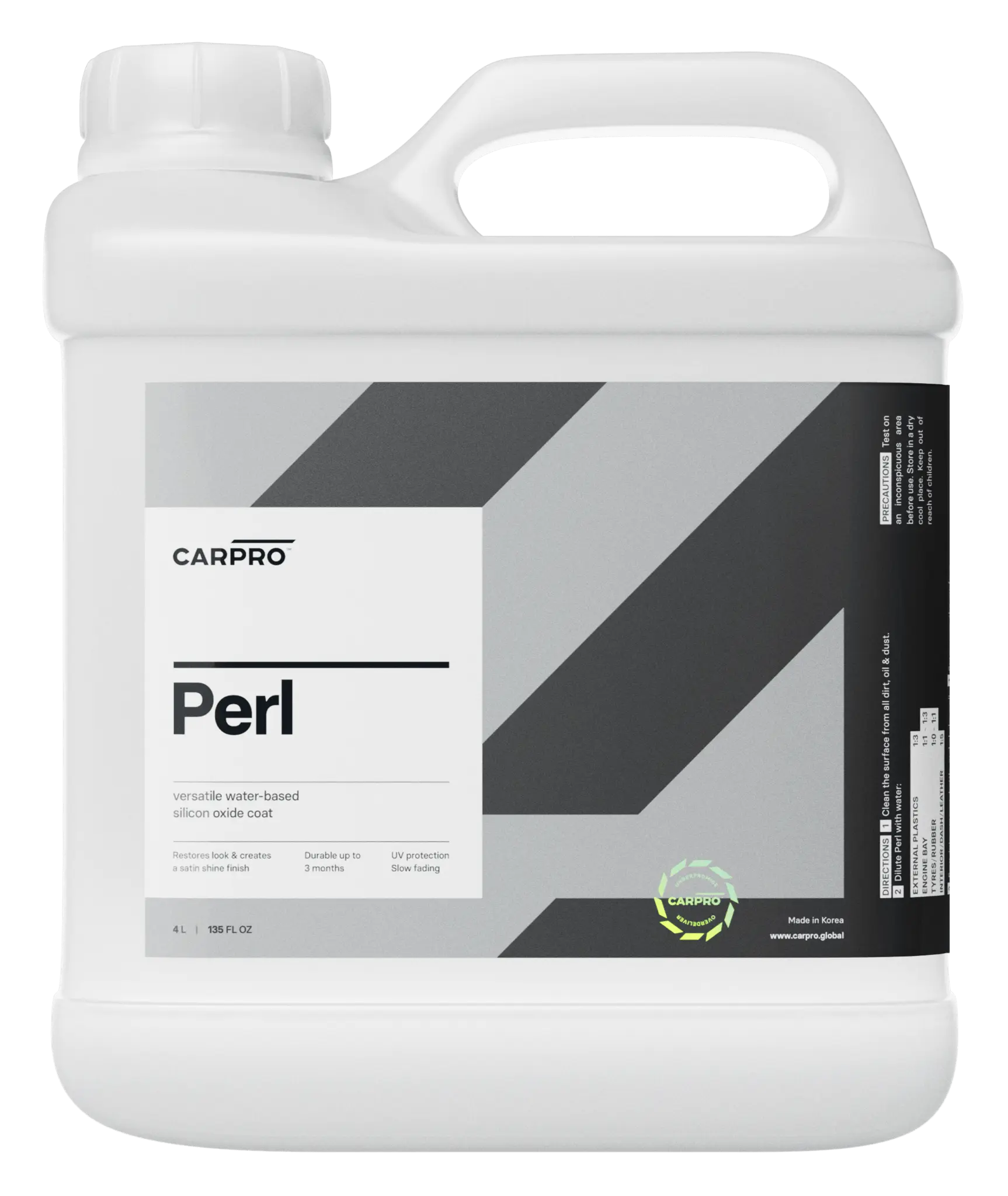 PERL by CARPRO is a concentrated versatile water-based, protective coating for plastics, rubber, and leather that offers tremendous UV protection. PERL is a water based dilute to suit product, covering a large array of tasking within car care. It can be used to restores the like-new appearance of hard exterior plastic surfaces and keeps them looking good with strong UV and hydrophobic protection. The sun can be damaging on flexible materials, like rubber, plastic, and leather. Gradually & over the course of time they fade & become brittle and cracked. PERL is changing the rules. PERL provides excellent protection and lasts up to three months!